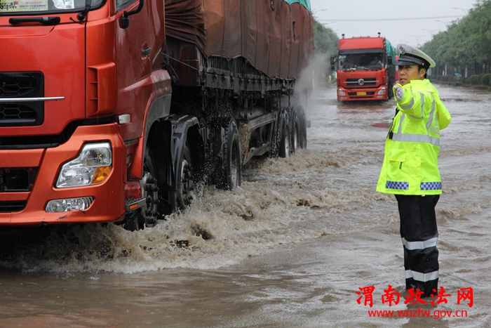6月23日陕西省渭南普降大雨,渭南市公安局交警支队临渭大队民警成为海中航标