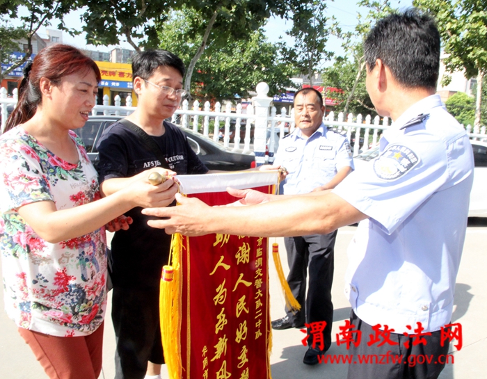 渭南政法网(临渭交警讯)7月28日,家住华阴市罗敷电厂的左建明夫妇来到临渭交警大队,将一面锦旗送给二中队全体民警。