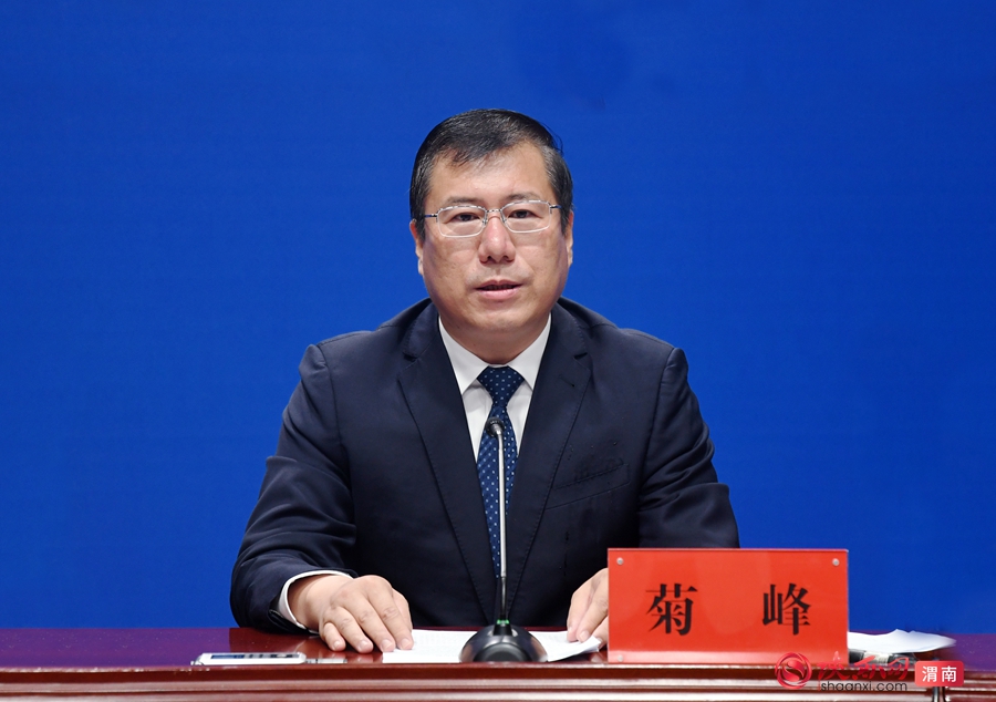 临渭区委副书记、区长菊峰介绍临渭区“十四五”时期经济社会高质量发展有关情况。记者 郝豆 摄