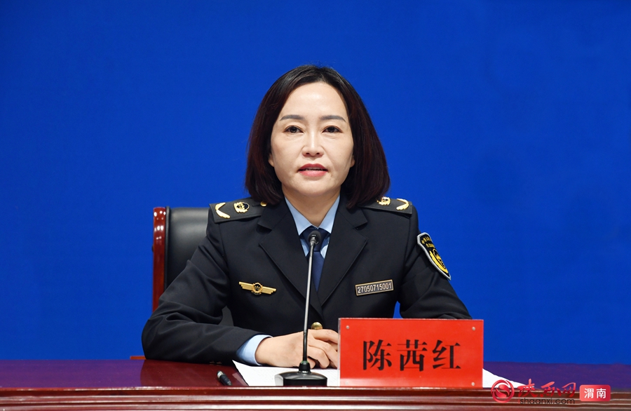 渭南市生态环境局临渭分局局长陈茜红回答记者提问。记者 郝豆 摄