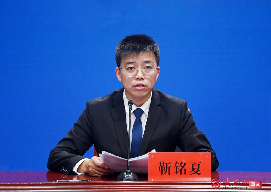 渭南市委宣传部副部长靳铭夏主持发布会。记者 郝豆 摄
