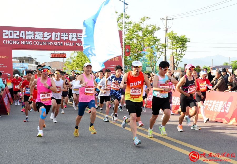 “崇新起跑・凝心铸魂”2024崇凝乡村半程马拉松赛在临渭区崇凝镇激情开跑。记者 郝豆 摄