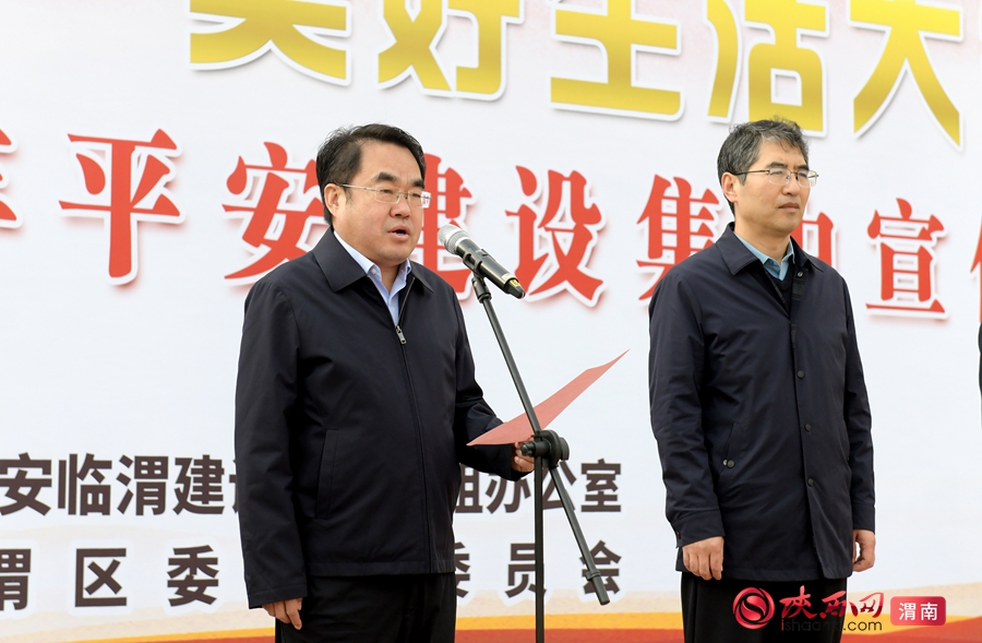 临渭区委常委、政法委书记曹智忍宣读《平安临渭建设倡议书》。记者 杨大君 摄