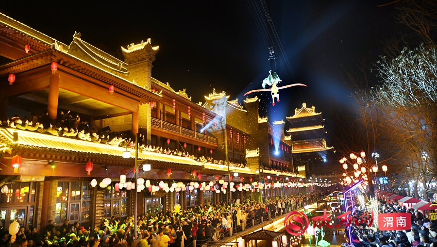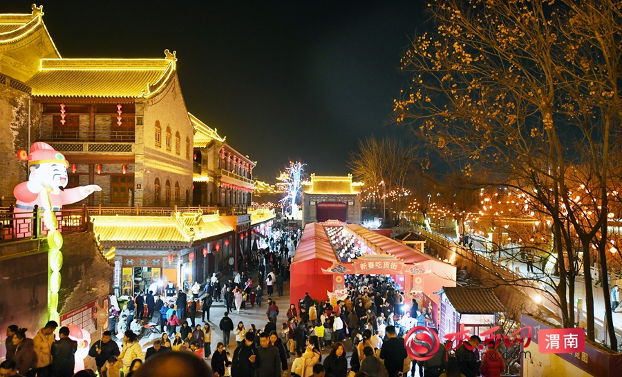 陕西网讯(记者 许艾学 陈冰娟)当腊月的寒风掠过黄河岸线,渭南老街的红灯笼已次第点亮。2026 年春节,以 “黄河岸边过大年” 为主题的 “寻味渭南” 非遗大集如约启幕,从腊月廿二至正月十五(2 月 9 日 - 3 月 3 日),这场融合非遗传承、民俗展演、美食市集、潮玩夜游的文化盛宴,在青石板路与湭河波光间铺展。春节前后一周,老街更是好戏连台:打铁花燃亮夜空,皮影戏流转光影,非遗美食香气弥漫,八方游客与市民扶老携幼,在千年文脉与市井烟火中,共度最地道的中国年。