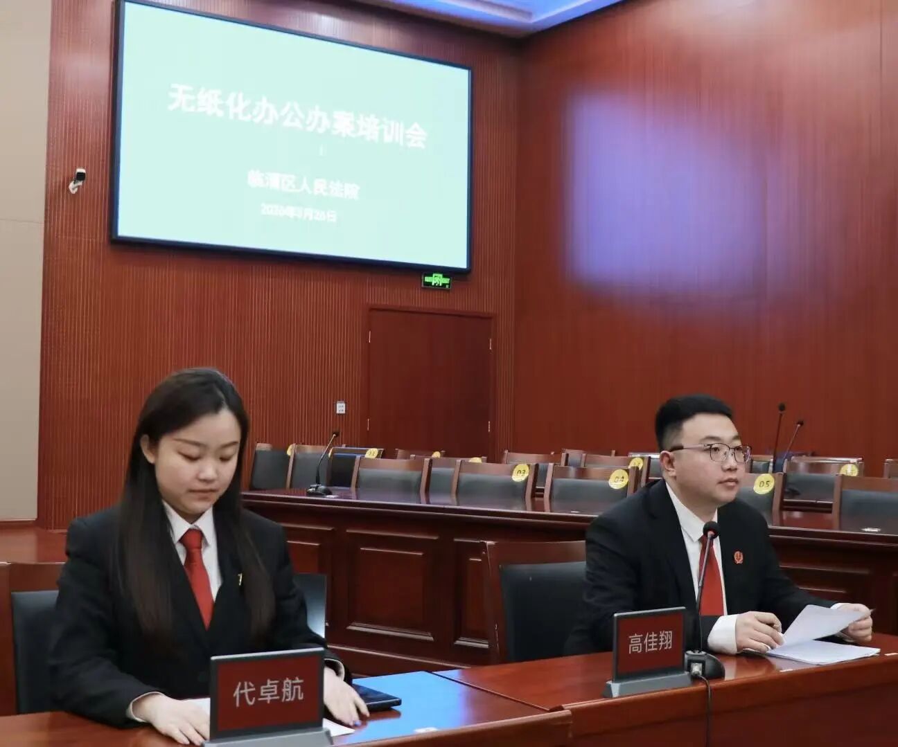 为深入推进智慧法院建设,全面落实无纸化办公办案工作要求,提升聘用人员队伍业务实操能力,临渭区人民法院组织召开无纸化办公办案专题培训会,全体聘用人员参加,机关党委副书记、政治部副主任高佳翔主持。
